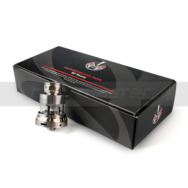 The Monstruito Flying Saucer RDA V2 is the updated version of the original one designed by FayDaddyVapes, featuring a little monster look with a glass chamber, which is one of the most innovative design among RDAs. Adjustment’s been made to the inner design, the air holes’ve been enlarged thus airflow will be smooth. The flavor is spot on! It is more a flavor chaser than a cloud beast. With the Pyrex chamber, you can check the wick and coil condition without removing the cap!